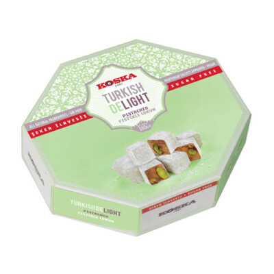 Koska Traditional Turkish Delight amb pistatxo sense sucre per a diabètics es consumeix àmpliament amb el seu contingut que els diabètics poden consumir fàcilment.