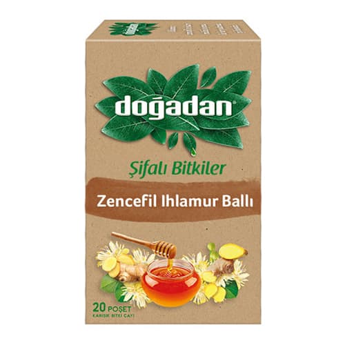 Grandbazaarist » Turkish Drink » Turkish Natural Herbal Tea » Dogadan Herbal Tea With Ginger Lime Honey 20 Tea Bags 34 g (1.19oz)