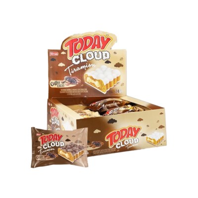 Elvan Today Cloud Tiramisu Flavored Chocolate Coated Cake with Milky Cream Filling in Box 40 gr (1.41oz) – 24 Pieces