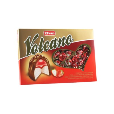 Grandbazaarist » Turkish Food » Chocolate And Candy » Elvan Volcano Milky Compound Chocolate with Milky Cream and Strawberry in Box 300 gr (10.59oz)