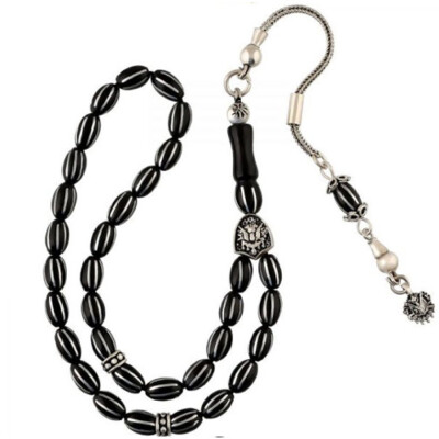 Bead Oltu Stone, perline di preghiera in argento a fette, Tesbih