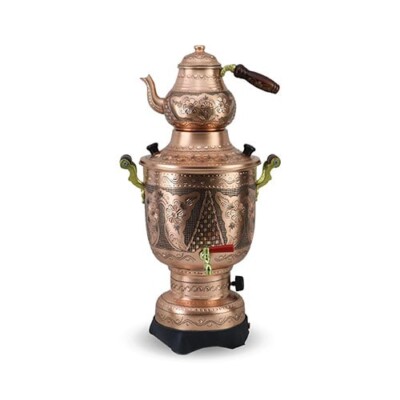 Sonay Bakircilik Rose Flower Antique Electric Copper Samovar 1248