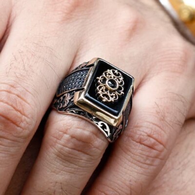 GrandBeards Sultan Ring With Zircon Design With Onyx Stone